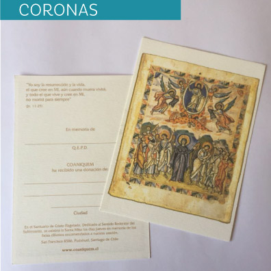Las coronas y saludos son tarjetas que puedes comprar para enviar a las familias de personas enfermas o fallecidas, o a aquellas que estén celebrando matrimonios o nacimientos.